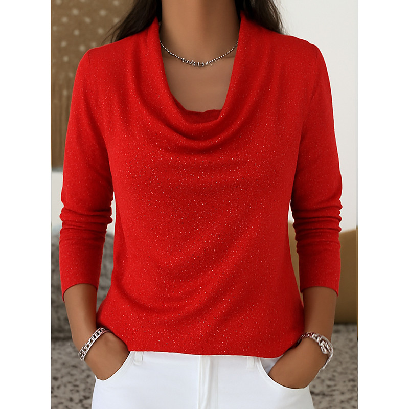 Women's Shirt Elegant Stylish Basic Long Sleeve Regular Tops Black Yellow Red Blue Purple Spring, Fall, Winter, Summer