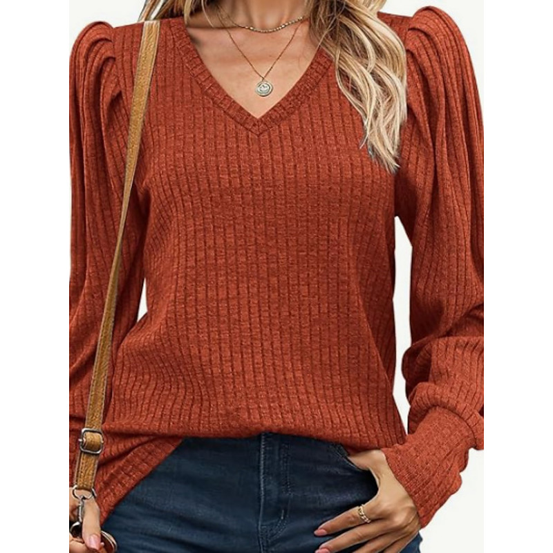 Women's Blouse Solid Color Stylish Casual Long Sleeve V Neck Regular Tops Daily Black Wine Khaki Spring Fall Winter