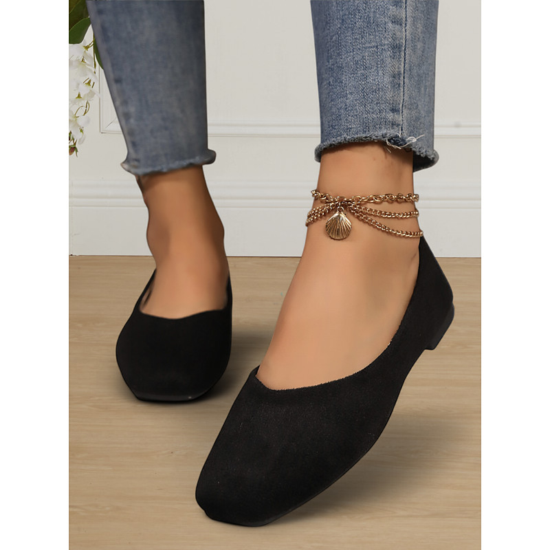 Women's Faux Suede Classic Square Toe Slip-On Flats for Everyday Wear, Office Travel