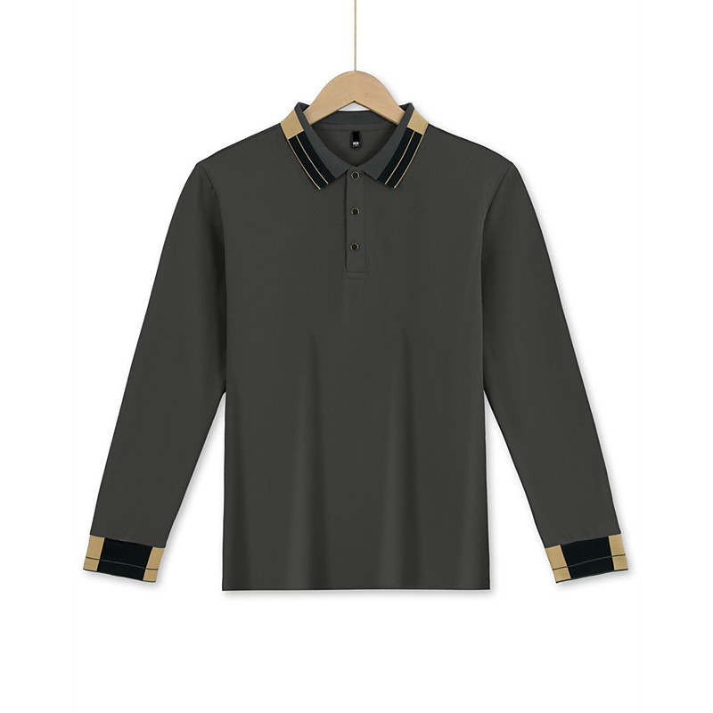 Men's Golf Shirt Golf Polos Shirts Work Casual Lapel Long Sleeve Basic Modern Color Block Patchwork Buttons Spring Fall Regular Fit Dark Grey Black White Army Green Golf Shirt