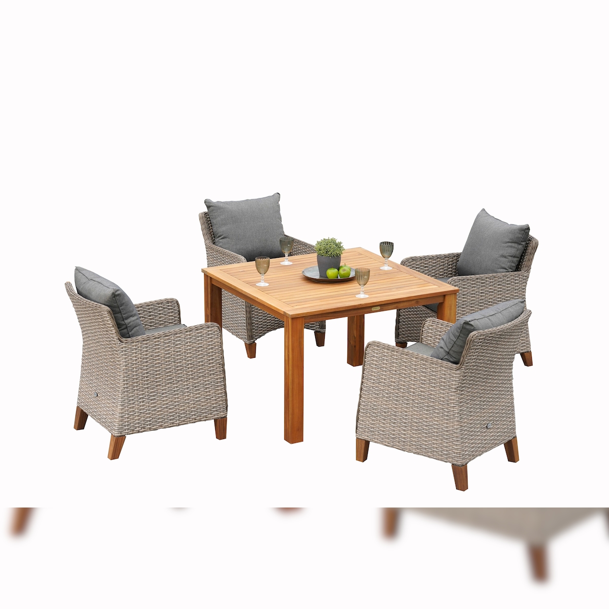 Merxx Avellino Set 5tlg., 4 Sessel, 1 Tisch 110 x 110 cm, Stahl/Kunststoffgeflecht/Akazie