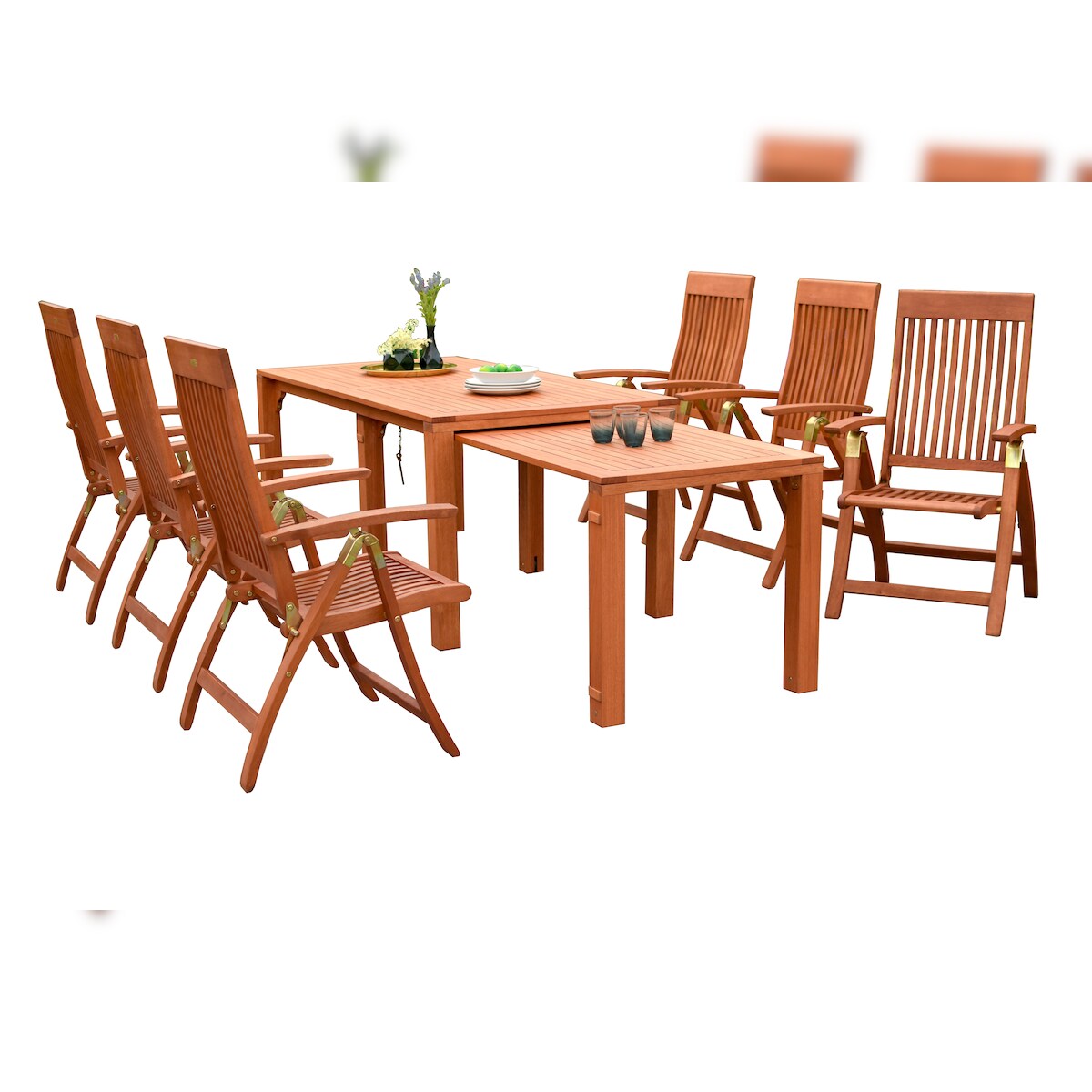 Merxx Comodoro Set 7tlg., 6 Klappsessel, 1 Ausziehtisch 185 x 90/73 cm, Eukalyptus