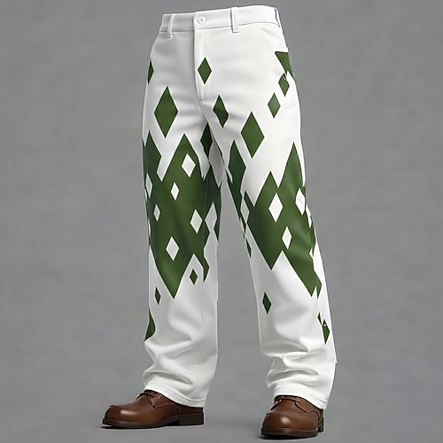 Herren Geometrisch Karo / Karomuster Abstrakt Hose Anzughose Mittlere Taille Lässig Outdoor Alltagskleidung Relaxed Fit Anzughose mit flacher Vorderseite und Seitentaschen Frühling Herbst 3D-Druck