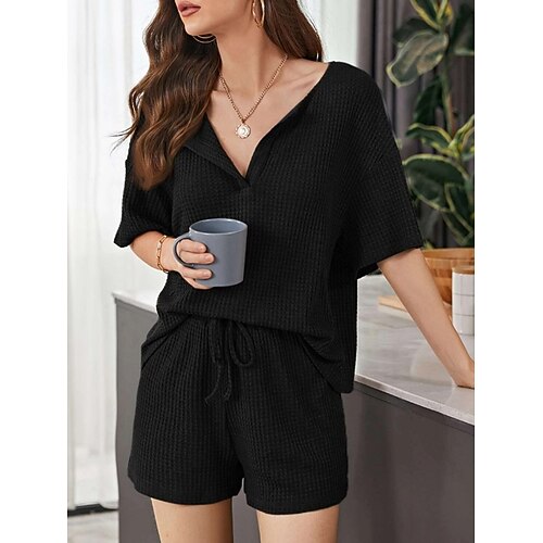 Per donna Set da due pezzi Set di Pantaloncini Manica Corta Scollo a V Tinta unica Moda Streetwear Casuale Quotidiano All'aperto Nero Bianco Giallo Estate Vestibilità regolare