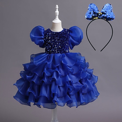 Abito da damigella d'onore bambina Ragazze Abito formale Abiti da sposa Feste Matrimonio Formale Adorabile Formale Bello Paillettes Patchwork Tinta unica Maniche Corte Girocollo Blu Nero Dai 4 anni
