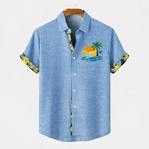 Per uomo Camicia di lino Camicia Estiva Abbigliamento da spiaggia Camicia con Bottoni Albero di Cocco Spiaggia Vacanza Blu Rosa Verde Cachi Manica Corta Collo ripiegato Estate Primavera Abbigliamento