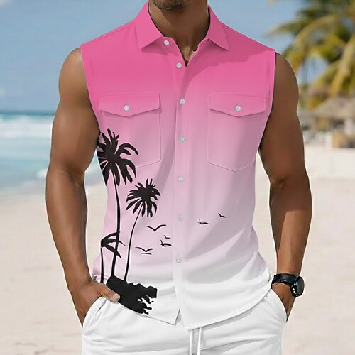 Per uomo Albero di Cocco Colore sfumato Piante Tropicali Camicia Camicia hawaiana estiva Camicia Aloha Senza Maniche Resort Vacanza al Mare Estate Primavera Collo ripiegato Stampa 3D Due tasche