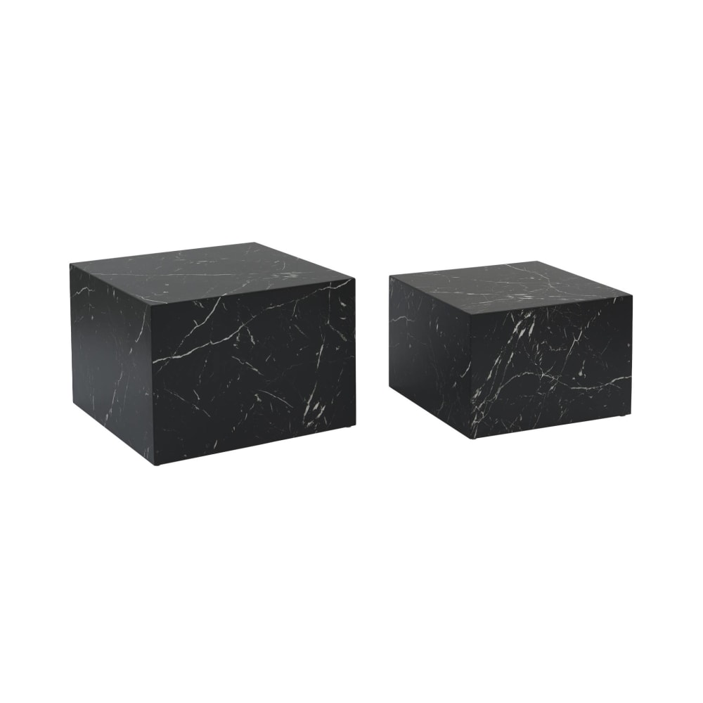 Set di 2 tavolini quadrati con effetto marmo, nero