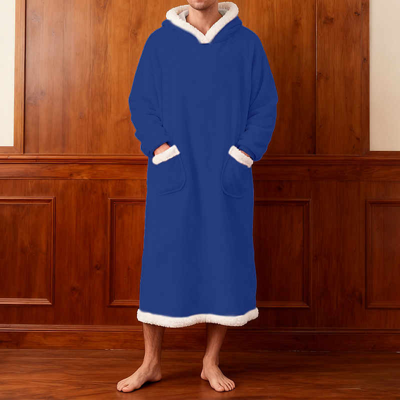 Men's Pajamas Sleepwear Bath Gown Plain Fashion Stylish Classic Home Daily Bed Sherpa Polyester Thermal Warm Comfort Soft Hoodie Long Sleeve Pocket Summer Spring Blue Light Pink
