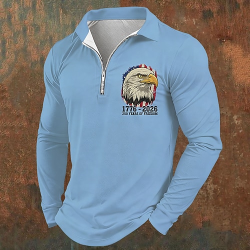 Amerikanischer Unabhängigkeitstag Herren Adler Polo Poloshirts Reißverschluss-Polo Langarm Polo-Shirts Viertelreißverschluss Sport Mode Lässig Täglich Outdoor Urlaub Halber Reißverschluss Druck