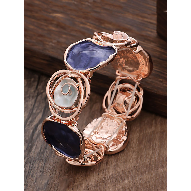 Women's Silver-Tone Bracelet – Artistic Design with Blue Resin Shell Accents for an Elegant Coastal Look
