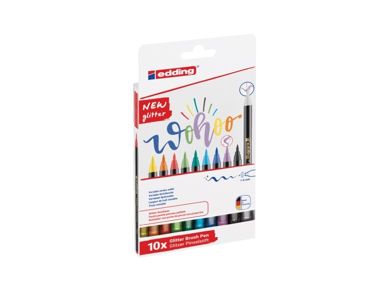 Edding 4-1340-10-4, 10 väriä, Aqua, musta, Sininen, Vihreä, Vaaleanvihreä, Oranssi, Purppura, Punainen, Keltainen, Harjaspää, 1 mm, 6 mm, Monivärinen