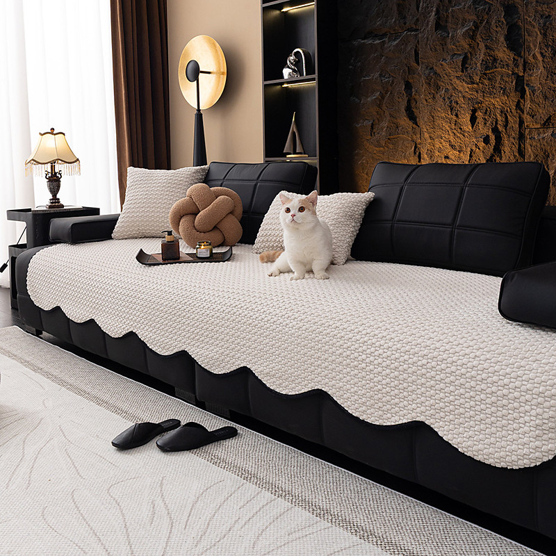 Sofa Cover For Dog Soft Thickened Plush Couch Cover with Irregular Wave Edges Pet Friendly