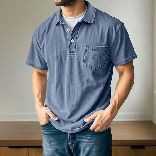 Per uomo Polo Sportivi Camicia 100% cotone lavaggio acido Casuale Ferie Bavero Manica Corta Vintage Essenziale Tinta unica Semplice Vintage ▾ angosciato Estate Primavera Primavera Estate