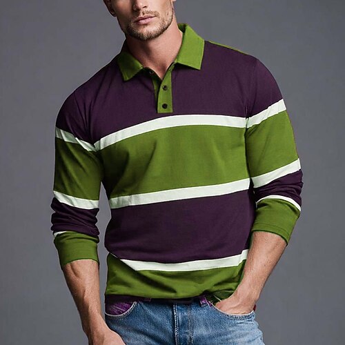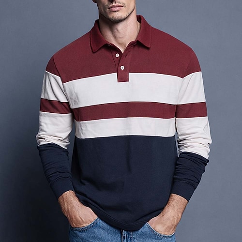 Per uomo Strisce orizzontali Polo da rugby Manica Lunga Magliette polo Camicie con Colletto Abbigliamento Sportivo Casual All'aperto Scuola Athleisure Stampa 3D Primavera Autunno Blu Rosso Marrone