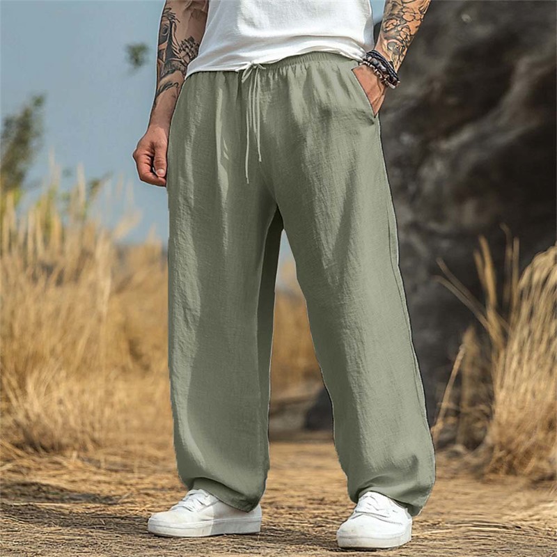 Men's Linen Pants Trousers Baggy Pants Beach Pants Drawstring Pocket Multi-pack Plain Comfort Breathable Full Length Daily Vacation Stylish WhiteBlackKhaki BlueKhakiRed Inelastic
