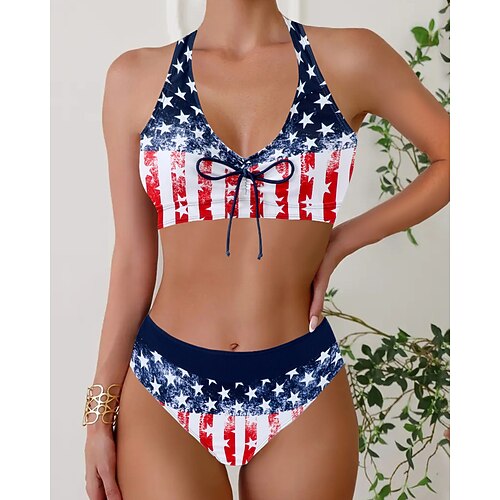 Per donna Costumi da bagno Due pezzi Birichino Costume da bagno Senza schiena Vacanza Abbigliamento da Spiaggia Floreale All'americana Senza Maniche Costumi da bagno