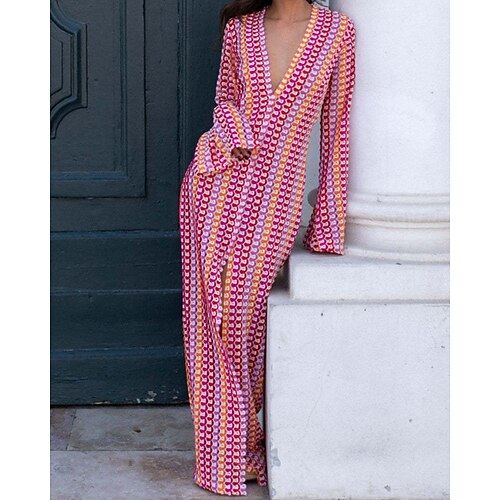 Per donna Costumi da bagno Copricostume Vestiti Costume da bagno Pizzo Vacanza Abbigliamento da Spiaggia Geometrico Scollo a V Manica Lunga Costumi da bagno