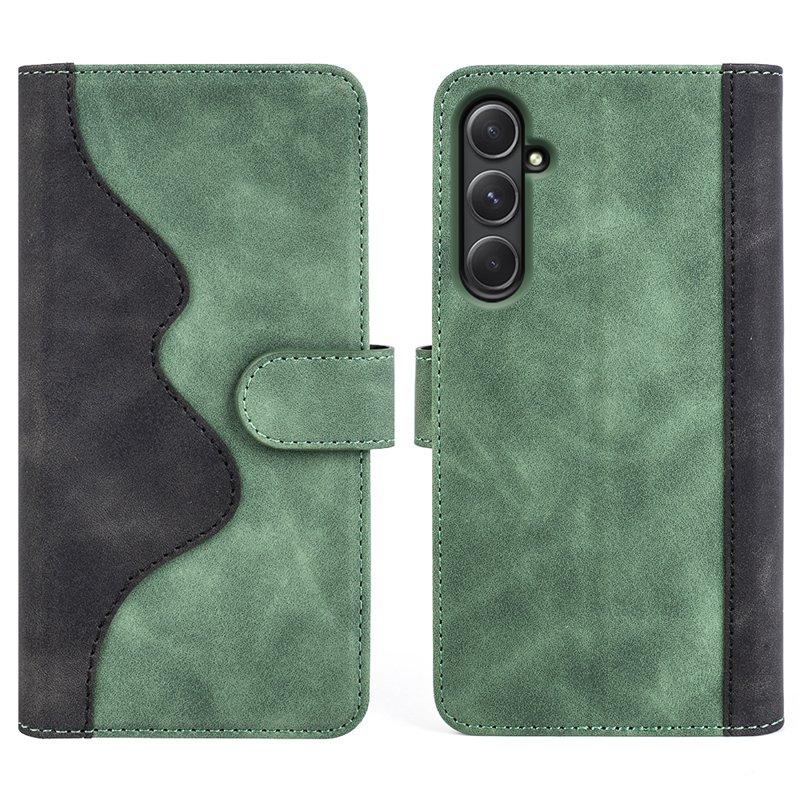 Samsung Galaxy A55 5G Plånboksfodral Konstläder + TPU Färgsplicing - Grön