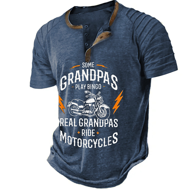 Men's Long Sleeve Henley T-Shirt: Real Grandpas Ride Motorcycles Biker Lifestyle Graphic Tee Gift