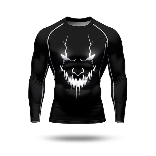 Per uomo Maglia a compressione Maglia da corsa Stampa 3D Manica Lunga Livello Base Halloween Asciugatura Rapida Compressione Elasticizzato Traspirante Allenamento in Palestra Allenamento attivo