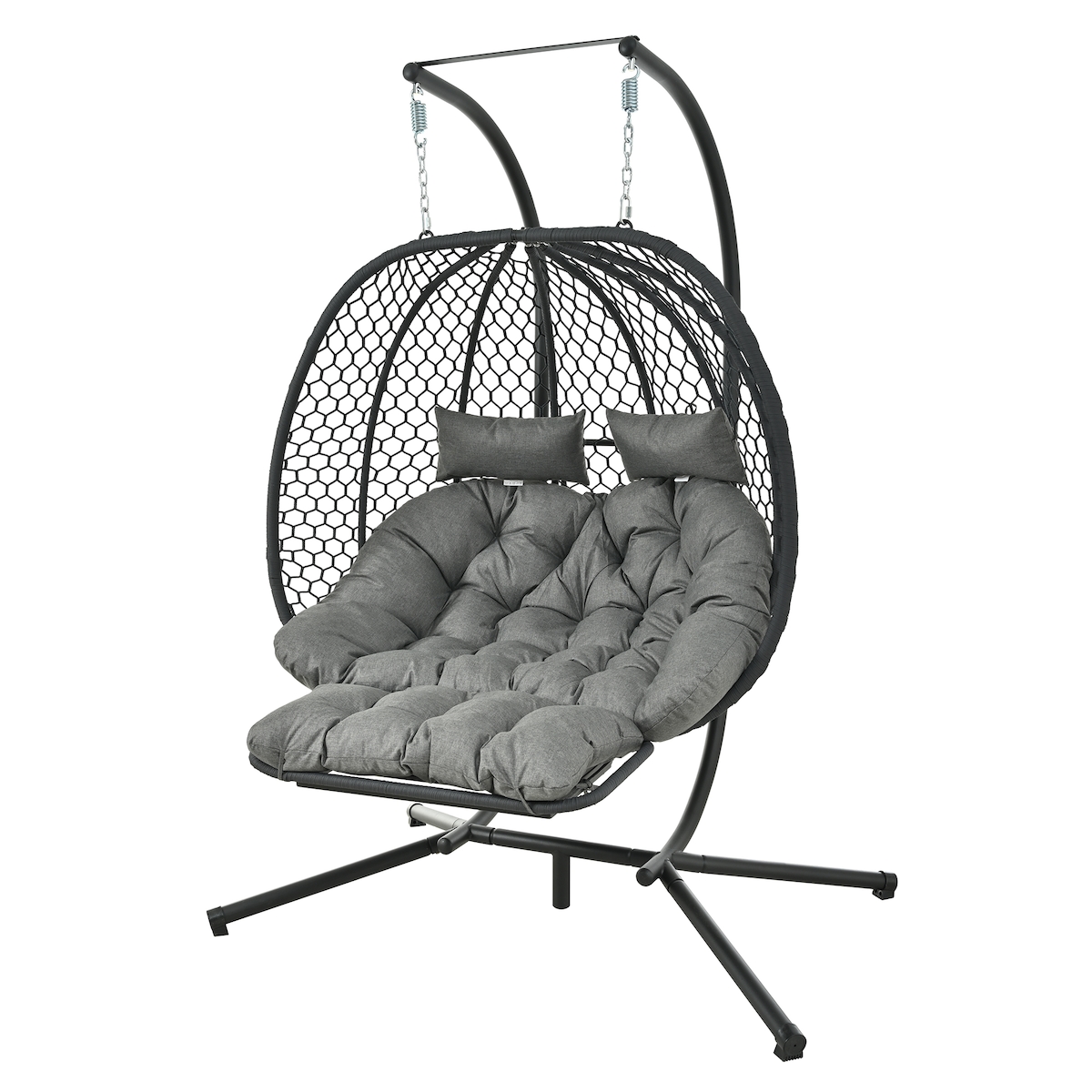 Merax Hängesessel Outdoor Garten 2-Sitzer mit Gestell, Egg Chair schaukelnd mit verstellbarer Fußstütze (5 Positionen), PE Seil & Eisenrohr, Grau