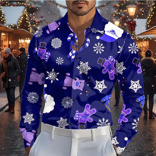 Natale Per uomo Babbo Natale Fiocco di neve omino di pan di zenzero Camicia Camicia in raso Camicia elegante Manica Lunga Moda Casual All'aperto Ferie Primavera Autunno Collo ripiegato Stampa 3D