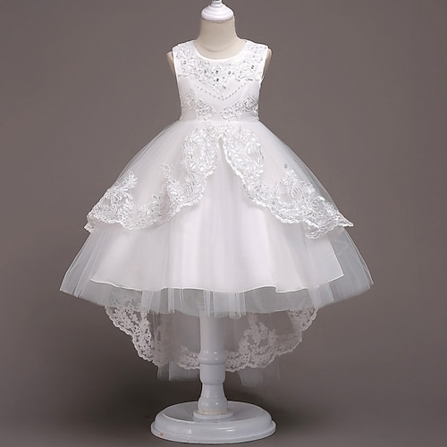 Blumenmädchenkleid Mädchen Formelle Kleidung Hochzeitskleidung Party Hochzeit Formell Mode Basic Prinzessin Kleid für die Erstkommunion Netz Einfarbig Ärmellos Rundhalsausschnitt Weiß Rosa Ab 4 Jahren