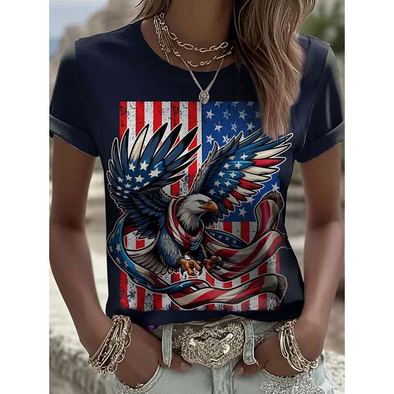 American Independence Day Women's T Shirt Graphic American Flag National Flag Vintage Stylish Classic Short Sleeve Crew Neck Regular Tops Daily Weekend Print Blue Black White Red Summer Spring