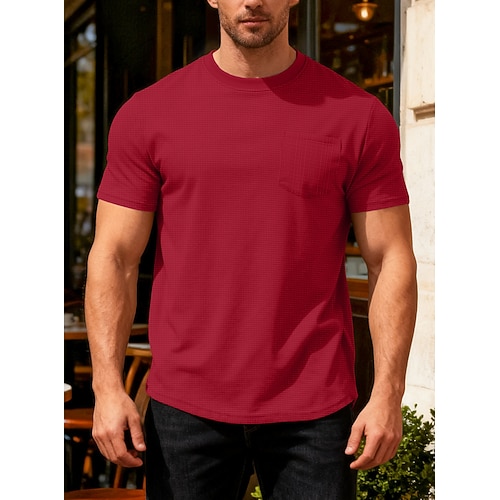 Da uomo Maglietta a Maglia Waffle Maglietta Manica Corta Girocollo Il giro Estate Tinta unica Testurizzato Moda Designer Casual Tasca Casuale Quotidiano All'aperto Blu chiaro Nero Bianco Maglietta
