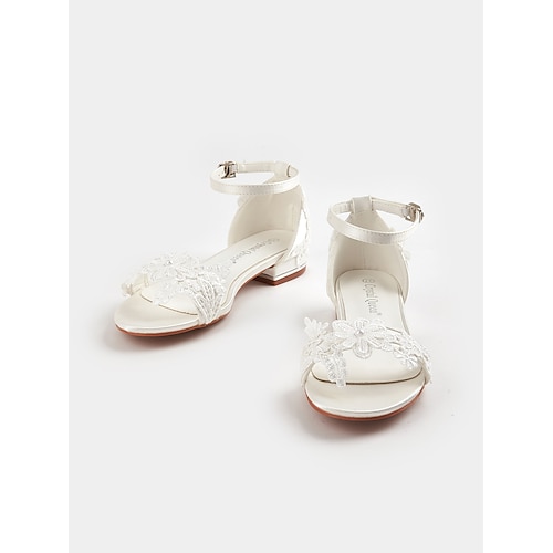 Scarpe con tacco a gattino da donna in pizzo bianco con cinturino posteriore e decorazioni in strass - scarpe da cocktail di ispirazione vintage per damigelle d'onore, ricevimenti in giardino e feste
