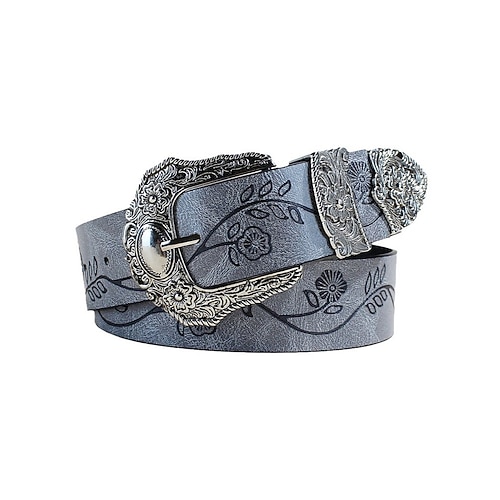 Cintura da donna in similpelle in stile bohémien: intricato motivo floreale con fibbia in metallo, perfetta per un uso casual e quotidiano.