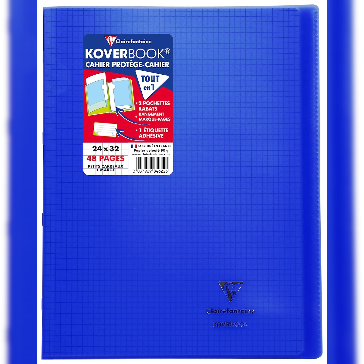 Clairefontaine 10x Koverbook, Heft 24x32 cm, 24 Blatt 90g, kariert 5/5 mit Rand, Einband aus transparentem Polypropylen - Marineblau 984622C