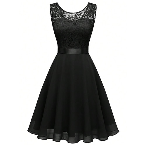 Elegante Anni 1950 Midi Vestito Senza maniche Pizzo Linea ad A Girocollo Costume Per donna Casuale Feste Abbigliamento Quotidiano Adulti Vestito Primavera Estate