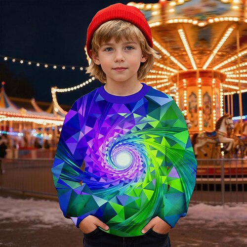Jungen 3D Grafik Geometrisch Optische Täuschung Sweatshirt Langarm Frühling Herbst Mode Basic Kinder 4-12 Jahre Rundhalsausschnitt Outdoor Lässig Täglich Normale Passform