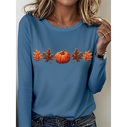 Per donna Maglietta Grafico Piante Vintage Elegante Classico Manica Lunga Girocollo Top Regolari Quotidiano Stampato Blu Nero Arancione Grigio scuro Grigio Primavera Autunno Inverno