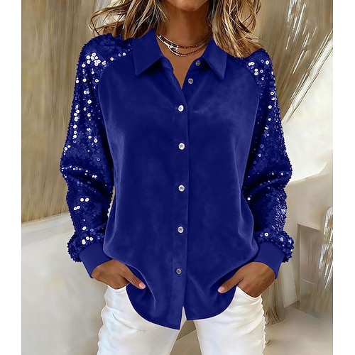 Capodanno Per donna Velluto Vintage Elegante Manica Lunga Top Regolari Quotidiano Ospite di nozze Abbigliamento da sera Blu Nero Bianco Rosa Rosso Autunno Inverno