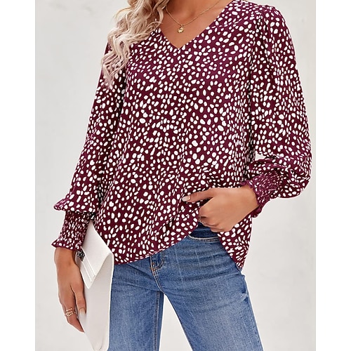 Per donna Camicia Stampa Vintage Elegante Manica Lunga Scollo a V Top Regolari Quotidiano Ferie Uscire Bottoni Stampato Nero Blu Cachi Grigio Estate