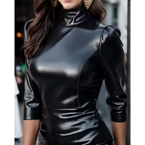 Per donna Blusa Top attillati Tinta unica Elegante Casual Manica Lunga Collo Alto Quotidiano Ferie Uscire Nero Primavera Autunno Inverno