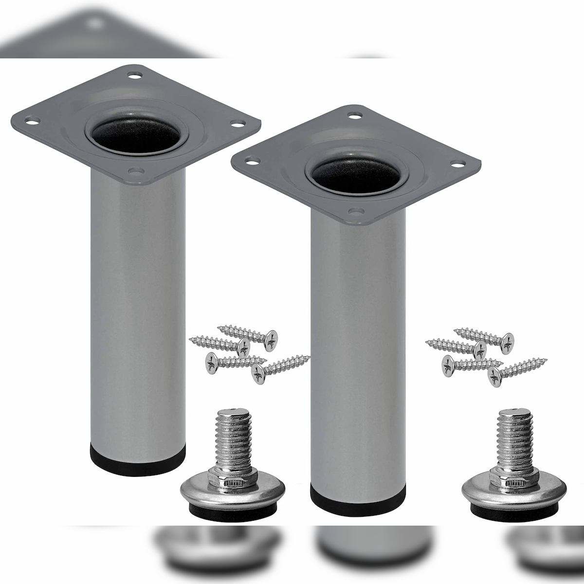 ID Dinkel Möbelfuß verstellbar Sofafuß belastbar bis 50 kg Stahlrohrfuß Sockelfuß Tischbein Rund Silber Höhe