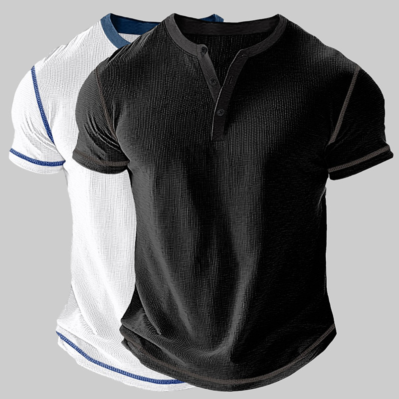 2 Piece Men's Waffle Henley Shirt Tee Short Sleeve Solid Color Vintage 2 Piece Buttons Henley Outdoor Casual Daily Summer Henley T-Shirt