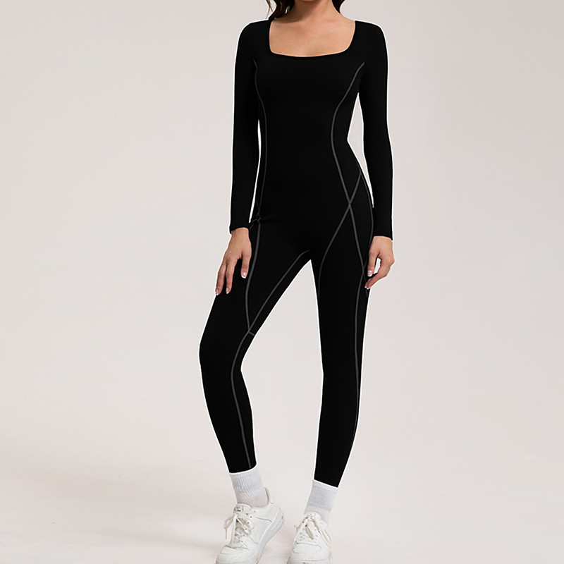Women's Workout Jumpsuit One Piece Romper Backless Solid Color Bodysuit Fall Black Pink Spandex Gym Pilates Yoga Tummy Control Long Sleeve Sport Activewear Tight Fit