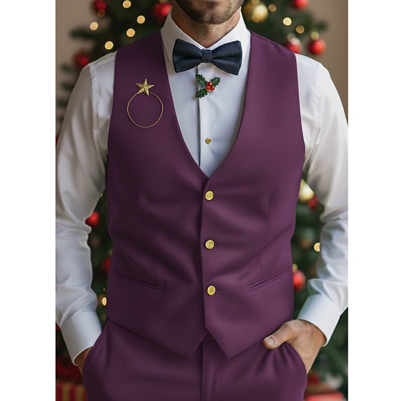 Men's Christmas Casual Party Suits V Lapel Red Purple Formal Solid Colored Tailored Fit 2 Piece
