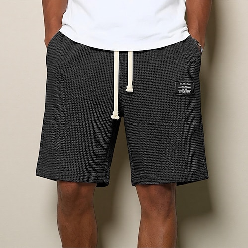 Per uomo Nido d'ape Pantaloncini Waffle Shorts Pantaloncini casual Elastico in vita Testurizzato Semplice Comodità Traspirante Lunghezza al ginocchio Casuale All'aperto Spiaggia Vacanza Moda Nero
