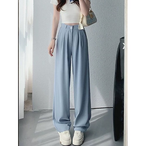 Per donna Pantaloni Pantaloni casual Dritto Moda Streetwear Essenziale Lunghezza intera Vita Alta Semplice Tasca Elastico in vita Confortevole Inelastico Quotidiano Vacanza Streetwear Nero Rosso Blu