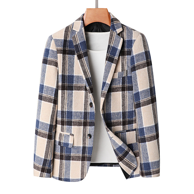 Men's Blazer Jacket Tweed Blazer Notch Collar Fashion Classic Casual Plaid Blazer Tweed Blazer Blue khaki Grey Tailored Fit Single Breasted Two-buttons