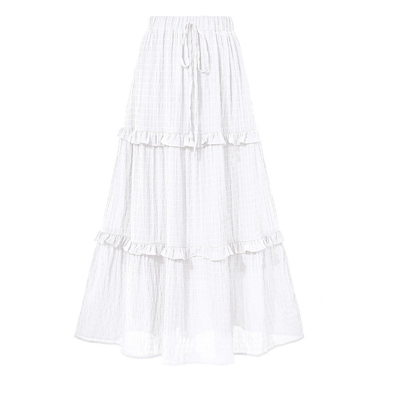 Women's A Line Fashion Casual Maxi High Waist Skirts Plaid Drawstring Pleated Micro-elastic Daily Street Navy Black White Pink Summer Spandex Polyester
