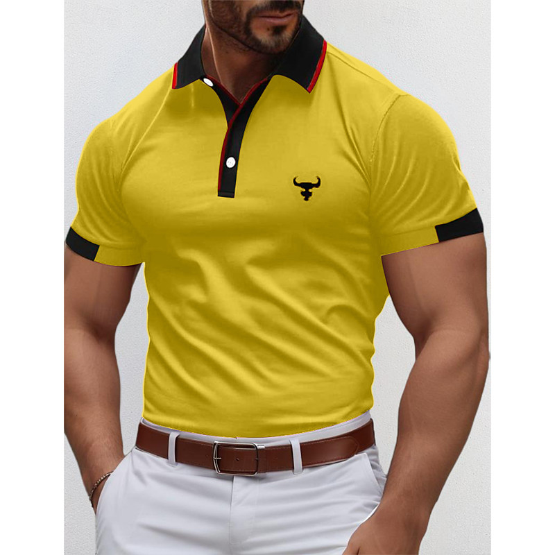 Men's Polo Shirts Golf Shirt Casual Sports Ribbed Polo Collar Short Sleeve Fashion Basic Color Block Cow Patchwork Embroidered Summer Regular Fit Yellow Red Blue Green Polo Shirts