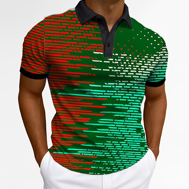 Men's Polo Business Casual Turndown Short Sleeve Fashion Geometric Color Block Buttons Summer Blue Green Polo