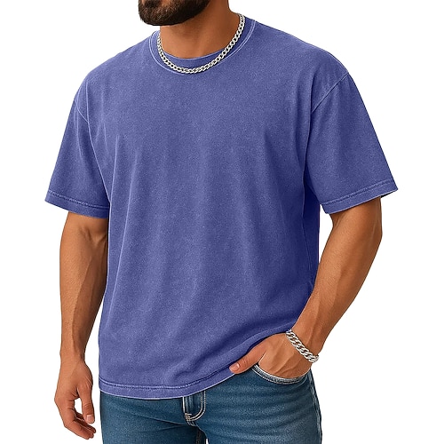 Per uomo Maglietta Manica Corta Girocollo Estate Primavera Tutte le stagioni Tinta unica Elegante Vintage Neutro Girocollo Puro Scuola Allenamento All'aperto Nero Rosa Blu reale Maglietta Top per Uomo